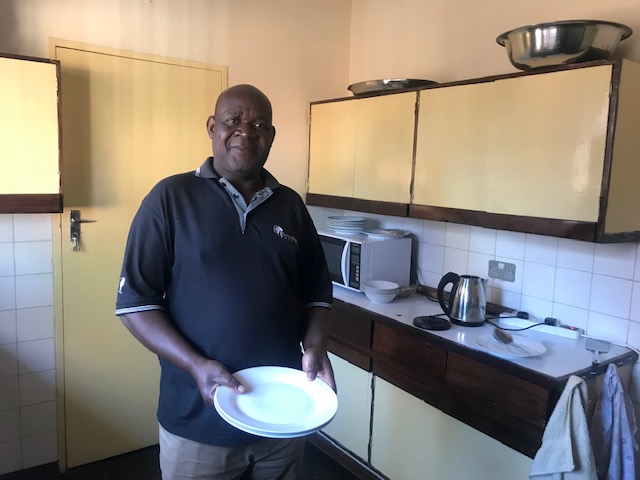 The guest house is attached to the College of Medicine campus and the Queen Elizabeth Central Hospital, so it turned out to be about a 15 minute walk from my new office in the Ob/Gyn department there.  We were greeted by the friendly caretaker, Kingsley Afilu, who made sure that we were fed filling meals at least three times a day.  When I told him that I would like more vegetables and explained that I tried to not eat meat, he seemed truly perplexed but later treated me to a delicious meal of rice and beans.  He was delighted to pose for a photo for “all my friends back home” and told me “welcome to Malawi” as I was taking the photo, even though I had been staying there for five days.  He is a gracious host and an unselfconscious expert at hospitality.